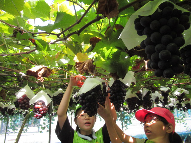 ぶどう農園に到着してぶどう狩りが始まると、どこのグループも一斉にぶどうを頬張って美味しそうに食べておられました。他のお客さんもたくさん来られていました。