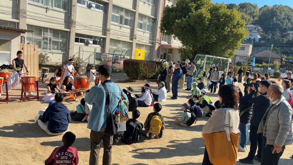 令和7年10月16日(日曜日)ファミリースポーツ大会in彼方小学校を行いました。100名以上のご家族に参加して頂きました。オープニングセレモニーとして、喜和塾さんによる「和太鼓演奏」が参加者の皆さんを力強くお迎えました。
