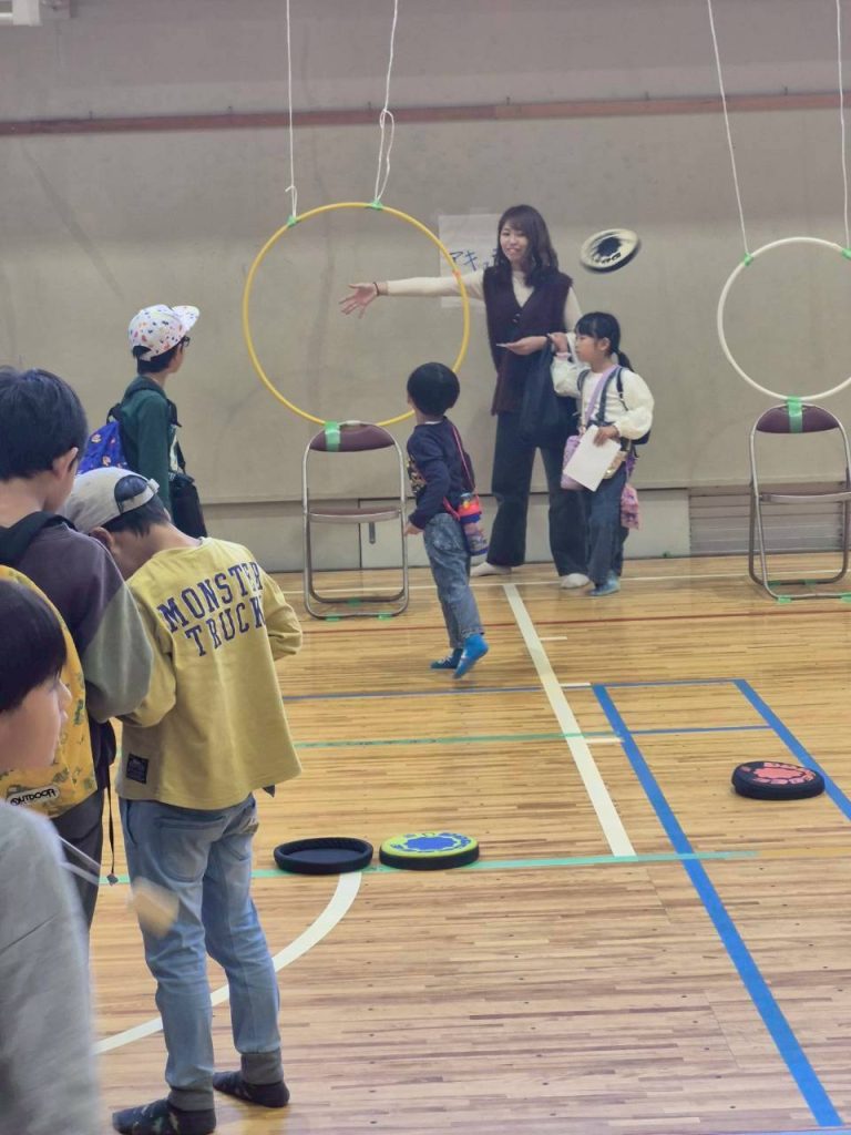 すごろくウォーキング・アキュラシー・ターゲットゲーム・コーンホール・室内ペタンク・ディスゲッター9、これらのスポーツを体験して頂きました。